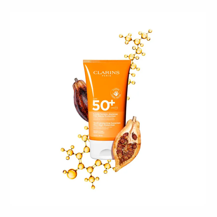 Adapta-se perfeitamente a atividades ao ar livre e é resistente à água. A sua fórmula incorpora o [Solar Protect Complex] que garante uma proteção de largo espetro contra os raios UVA/UVB e a luz azul, graças à sua combinação de filtros solares. Composto por um poderoso duo de extrato de cacau bio e derivado de vitaminas, também oferece ação antirrugas, antimanchas e antioxidante.